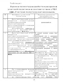- Оценка полноты разработки разделов учетной политики в соответствии с ПБУ 1/2008 «Учетная политика организации» 10