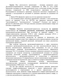 Задача: Вид деятельности организации – оказание курьерских услуг. Доставляются/принимаются почтовые отправления на ПВЗ по сети СДЭК. Заключены договоры на оказание возмездных услуг и агентский договор. Доставка почтовых отправлений на ПВЗ осуществляется заказчиком или нами. Рассматривается возможность принимать имущество (почтовые отправления) на хранение с последующей их доставкой по указанию заказчика по указанным им адресам.