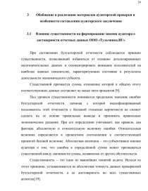 3.1 Влияние существенности на формирование мнения аудитора о достоверности отчетных данных ООО «Тульчинка.RU» 35