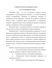 Курсова складається з двох частин. Перша частина присвячена теоретичним аспектам внутрішнього аудиту, а друга - практичній частині.