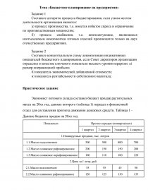 Тема «Бюджетное планирование на предприятии»