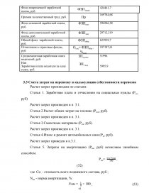 3.3 Смета затрат на перевозку и калькуляция себестоимости перевозок 43