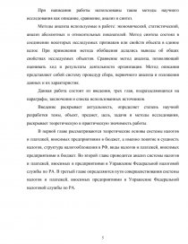 Целью данной работы является изучение системы налогов и платежей, вносимых предприятиями в Управление Федеральной налоговой службы по РА.