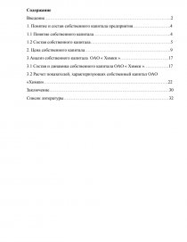 3.1 Состав и динамика собственного капитала ОАО « Химки »……………..17
