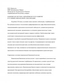 Банковская система Азербайджана и ее развитие в условиях финансовой глобализации