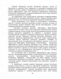 На основе изучения литературы зарубежных и отечественных авторов и нормативно-правовых актов Республики Беларусь получены достоверные данные, предложены пути и направления развития банковской системы Республики Беларусь.