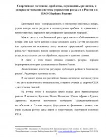 Современное состояние, проблемы, перспективы развития, и совершенствования системы управления рисками в России и в ПАО Сбербанк России»
