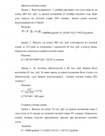 Задача 1. Векселедержатель 1 октября предъявил для учета вексель на сумму 600 тыс. руб. со сроком погашения 25 октября текущего года. Банк учел вексель по учетной ставке 20% годовых. Какую сумму получит векселедержатель от банка?