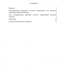 В работе будут рассмотрены различные виды программ льготного кредитования различных отраслей российской экономики и то, как они влияют на развитие государства. Для этого были изучены государственные программы за последние 10 лет и проведен анализ того, как они повлияли на целевую область применения. По результатам исследования был сформирован общий вывод о том, в чем заключается роль льготного кредитования России.