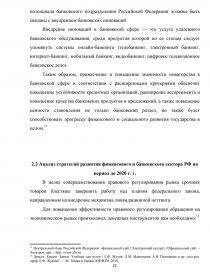 2.2 Анализ стратегий развития финансового и банковского сектора РФ на период до 2020 г. г…………………………………………………………………………..21