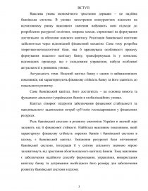 Роль банківської системи в розвитку економіки України в значній мірі залежить від її фінансової стійкості. Найбільш важливим показником, який характеризує фінансову стійкість окремих банків і банківської системи в цілому, є банківський капітал. Зміцнення ресурсної бази вітчизняної банківської системи, інтеграція її у світову спільноту значною мірою залежатимуть від зростання обсягів власного капіталу банків. Тому важливим є забезпечення надійного способу формування, управління, використання капіталу банку та дотримання необхідного його розміру для забезпечення розвитку банківської системи в цілому.