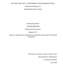 Понятие и правовое регулирование иностранных инвестиций в Российской Федерации