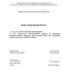 на тему: Бизнес-план инвестиционного проекта по внедрению производственных мощностей при освоении нового вида продукции «шоколадная паста» на ОАО «Спартак»
