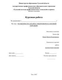 На тему: «ОСОБЕННОСТИ АНАЛИЗА ТОВАРООБОРОТА ОПТОВОЙ ТОРГОВЛИ»