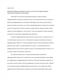 ИНФОРМАЦИОННАЯ КОМПЕТЕНТНОСТЬ И КУЛЬТУРА ВЫПУСКНИКА ОБРАЗОВАТЕЛЬНОЙ ОРГАНИЗАЦИИ.
