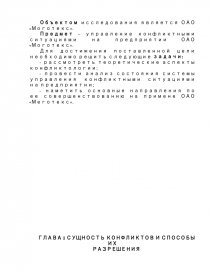 Предмет – управление конфликтными ситуациями на предприятии, в частности на ОАО «Моготекс».