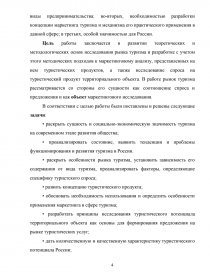 Цель работы заключается в развитии теоретических и методологических основ исследования рынка туризма и разработке с учетом этого методических подходов к маркетинговому анализу, представленных на нем туристических продуктов, а также исследование спроса на туристический продукт территориального объекта. В работе рынок туризма рассматривается со стороны его сущности как соотношение спроса и предложения и как объект маркетингового исследования.
