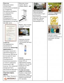 Ассортимент. [pic 2] Завод "Белпласт" предлагает широкий ассортимент пластмассовых товаров: гидроизоляция для фундамента, товары для строительства и ремонта, посуда для пикника, товары к дачному сезону, бордюрная лента, наборы для ванных комнат и туалета, товары сантехнического назначения, пакеты с логотипом под заказ, пленочные изделия, хозтовары, контейнеры для еды, сигнально-защитные ленты, многофункциональные тренажеры LEGENDGYM. [pic 3] Качество. Продукция завода соответствует техническим условиям и стандартам Республики Беларусь, на предприятии установлено современное оборудование и применяется система менеджмента качества ISO 9001-2015. [pic 4] Свойства. На предприятии применяются технологии литья под давлением на литьевых машинах с объемом впрыска от 63 кв.см до 2830 кв.см, используются такие материалы, как полипропилен, полиэтилен высокого и низкого давления, полистирол, ABS пластик. Это позволяет продукции быть высококачественной и долгоиспользуемой. Торговая марка, бренд. ОАО «Завод "Белпласт"» [pic 5] Торговая марка известна в РБ, РФ, Казахстане. Обслуживание. На официальном сайте завода около каждого товара указаны адрес и телефон, по которому можно обратиться насчет гарантийного обслуживания. Гарантия, возврат. Гарантия на различные товары отличается (например, гарантия на силовые тренажеры – 1 год) Обновление портфеля. Завод «Белпласт» разрабатывает новые виды изделий из пластмассы. Уже появились многофункциональные тренажеры LEGENDGYM , и началось производство посуды для пикника. | Стратегия ценообразования. При реализации продукции предприятие использует оптовые и отпускные цены. Отпускная цена, по которой товар реализуется предприятием-изготовителем, формируется затратным методом и состоит из себестоимости единицы продукции, прибыли и косвенных налогов, отчислений во внебюджетные фонды, непосредственно увеличивающих цену Прайс-лист. Набор "Пикник" - 40.50 р.[pic 6] Фасовочные пакеты., 100 шт. – 2.46 р. [pic 7] Шведская стенка (турник, брусья, силовая скамья) – 414 р. [pic 8] Парник, мини теплица с пленкой, 7,6 м (10 секций) - 89.24 р.[pic 9] Арматура спускная, сливной механизм 1-кнопочный (низ/выс) -18.96 р. [pic 10] Скидки. Ежемесячно вводится скидка 10% на определенную группу товаров (в этом месяце скидка на все виды дозаторов для антисептика) Условия поставки товара и его оплаты. Оплатить товар можно наличными, а также возможен безналичный перевод на расчётный счёт продавца. Получение товара осуществляется через самовывоз, а также возможна доставка Белпочтой. | Каналы сбыта. Оптовая и розничная торговля. Рынки сбыта продукции ОАО «ЗАВОД «Белпласт» – Беларусь, Россия, Казахстан. Завод осуществляет производственную деятельность на двух целевых рынках: на рынке производства и реализации товаров народного потребления и на рынке производства продукции и оказания услуг по заказам сторонних организаций. Реализация продукции на свободный рынок осуществляется через оптовую и розничную торговлю. Месторасположение. г.Минск, ул. Гусовского, 2. [pic 11] Основной объем продукции продается через интернет-магазин. [pic 12] Транспортировка. Транспортировка осуществляется через региональных представителей, которые находятся в Москве, Санкт-Петербурге, Екатеринбурге и др. | Реклама. Существуют рекламные сюжеты для телевидения. Предприятие рекламируется на календарях различного фо