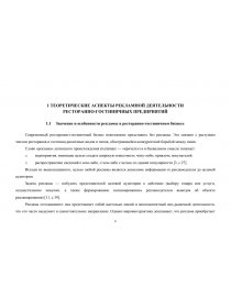 1.1 Роль и значение рекламы в ресторанно-гостиничном бизнесе… | 7 |