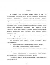 Цель курсового проекта – оценить состояние и выявить перспективы развития мировой валютной системы.
