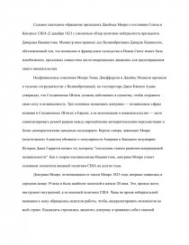 Седьмое ежегодное обращение президента Джеймса Монро о состоянии Союза в Конгресс США (2 декабря 1823 г.) включало обзор политики нейтралитета президента Джорджа Вашингтона. Министр иностранных дел Великобритании Джордж Каннингем, обеспокоенный тем, что испанское и французское господство в Новом Свете может быть возобновлено, предложил совместное англо-американское движение для предотвращения такого вмешательства.