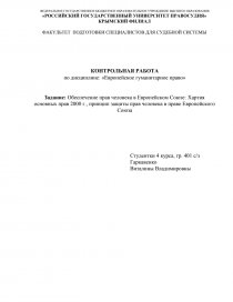 Задание: Обеспечение прав человека в Европейском Союзе: Хартия основных прав 2000 г., принцип защиты прав человека в праве Европейского Союза