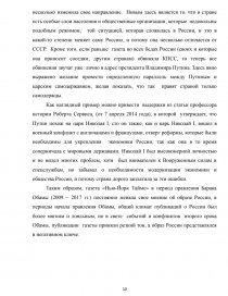 Американское издание “The New York Times” при описании отношений России и вышеупомянутых стран представляет Россию как антидемократическое государство, противопоставляя ее другим государствам в негативном свете. Политика США в отношении СССР, а затем и России постоянно менялись, а вместе с ней менялось и представление образа СССР–России на страницах газеты «Нью-Йорк Таймс», хотя основные установки газеты остались в целом устойчиво стабильными, менялись только форма, но не содержание. Можно проанализировать составляющие образа СССР-Россия на страницах «НьюЙорк Таймс», которые были актуальны во времена правления Барака Обамы.