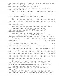 Целью работы является выработка практических рекомендаций для эффективного использования полученных знаний, путём детального изучения теоретических и практических аспектов данной проблемы, а также выработка предложений по увеличению доли МУП СО "Фармация"