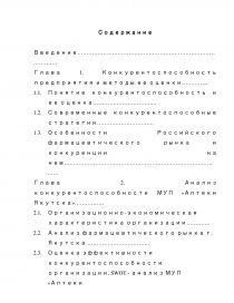 - Оценка эффективности конкурентоспособности организации, SWOT - анализ МУП «Аптеки Якутска»…………………………………………….