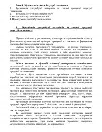 1. Організація дистрибуції матеріалів та готової продукції індустрії гостинності
