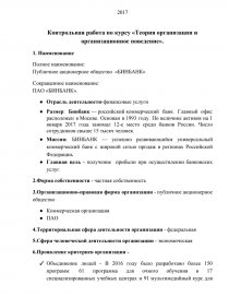 на тему: «Изучение проявления аспектов теории организации и организационного поведения в компании (на примере ПАО «БИНБАНК»)»