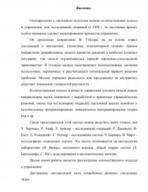 Целью анной работы является рассмотрение количественного подхода к управлению
