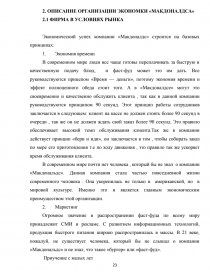ГЛАВА 2. ОПИСАНИЕ ОРГАНИЗАЦИИ ЭКОНОМКИ «МАКДОНАЛДСА»..................................................................................................23