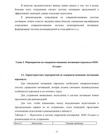 Глава 2. Мероприятия по совершенствованию мотивации персонала ООО «Глэдис» 27