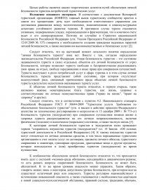 Целью работы является анализ теоретических аспектов путей обеспечения личной безопасности туристов-потребителей туристических услуг.