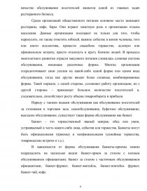 Последствия глобального экономического кризиса и обострение конкуренции на рынке услуг массового питания обуславливают необходимость совершенствования деятельности организаций общественного питания. При этом особенно значимой становится роль обслуживания, поскольку оно является тем критерием, по которому судят о том или ином предприятии на рынке услуг. Хорошее клиенториентированное обслуживание стимулирует рост и величины среднего чека, и частоты повторных возвращений. Поэтому высокое качество обслуживания посетителей является одной из главных задач ресторанного бизнеса.