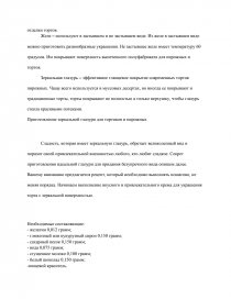Изделия отделанные данным кремом помещают в печь на 1-2 минуты при температуре 220-240 градусов для образования на поверхности темно-желтого цвета. Требования к качеству: воздушная белая масса, влажность 27%.