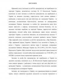 Україна, проголосивши себе суверенною, незалежною, демократичною, соціальною, правовою державою, встановила принцип рівності всіх людей у їх гідності та правах (ст.21 Конституції України). Вказана рівність у правах іноземців та осіб без громадянства уточнюється в ст. 26 Конституції та в ч.1 ст.2 Закону України «Про правовий статус іноземців та осіб без громадянства». Так, іноземці та особи без громадянства, що перебувають в Україні на законних підставах, користуються тими самими правами і свободами, а також несуть такі самі обов’язки, як і громадяни України, – за винятками, встановленими Конституцією, законами чи міжнародними договорами України. Варто зазначити, що іноземців та громадян України не можна повністю урівнювати в правах, оскільки, безумовна рівність загрожувала б інтересам українських працівників. Тому в Україні «де-факто» діє політика захисту національного працівника. На нашу думку, таку політику варто законодавчо закріпити.