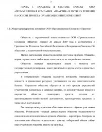 ГЛАВА 1. ПРОБЛЕМЫ В СИСТЕМЕ ПРОДАЖ ООО «ПРОМЫШЛЕННАЯ КОМПАНИЯ «ПРАКТИК» И ПУТИ ИХ РЕШЕНИЯ НА ОСНОВЕ ПРОЕКТА ОРГАНИЗАЦИОННЫХ ИЗМЕНЕНИЙ