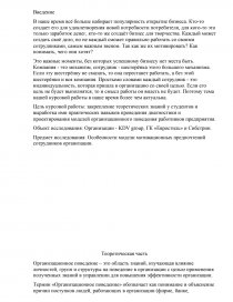 Цель курсовой работы: закрепление теоретических знаний у студентов и выработка ими практических навыков проведения диагностики и проектирования моделей организационного поведения работников предприятия.
