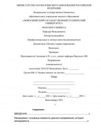 подготовки 38.03.02 Менеджмент. Балл: _________
