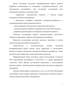 Целью настоящей выпускной квалификационной работы является разработка рекомендаций по повышению конкурентоспособности ОАО «Бельковский лесокомбинат». Для достижения поставленной цели предполагается решение следующих задач: