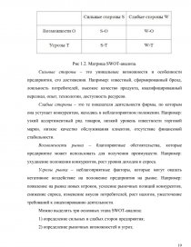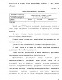 - оценка конкурентоспособности предприятия методом SWOT-анализа;