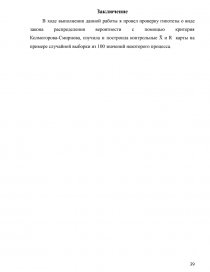 В курсовой работе выполнены проверка гипотезы о виде закона распределения вероятности, с помощью критерия Колмогорова-Смирнова и построение контрольных карт Шухарта.