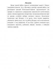Целью данной работы является систематизация знаний в области менеджмента качества. Это и обусловило структуру курсовой работы, для рассмотрения критерий Колмогорова-Смирнова, предназначенного для проверки на нормальность распределения совокупностей количественных данных, отведена первая глава; а вторая глава - построению контрольных карт на примере случайной выборки некоторого процесса. Рассмотрение контрольных карт Шухарта, а не других, более поздних разработок, объясняется, прежде всего, тем, что работы Шухарта, дали толчок развитию концепции в этом направлении. И для более глубокого понимания всего менеджмента качеством, необходимо обладать знаниями о появлении значимых открытий.