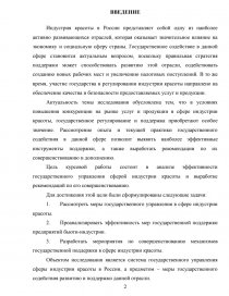 Цель курсовой работы состоит в анализе эффективности государственного управления сферой индустрии красоты и выработке рекомендаций по его совершенствованию.