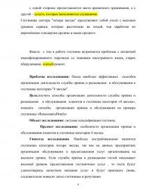 Предмет исследования: особенности организации приёма и обслуживания клиентов в гостинице категории 4 звезды