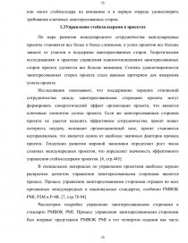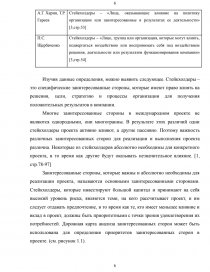 В первой главе дана характеристика теоретическим аспектам. Рассмотрен анализ и классификация стейкхолдеров, а также управление стейкхолдерами в проектах.