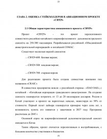 Во второй главе дана общая характеристика авиационного проекта «CR929». Проведен анализ стейкхолдеров авиационного проекта «CR929». Приведены результаты оценки анализа стейкхолдеров и разработаны рекомендации по их усовершенствованию.