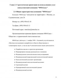 Глава 2. Стратегическая ориентация на использование услуг консалтинговой компании "ММ-Класс" 11